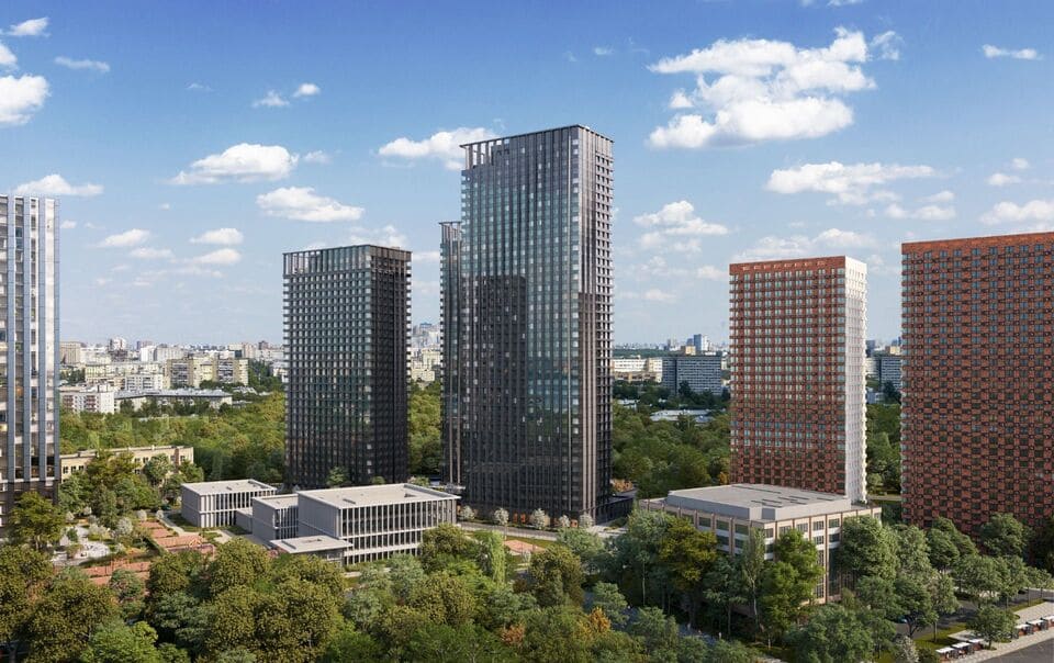 Moments — это ансамбль из 8 разноэтажных башен с выразительной современной архитектурой. Высотность от 14 до 47 этажей формирует динамичный силуэт квартала.
