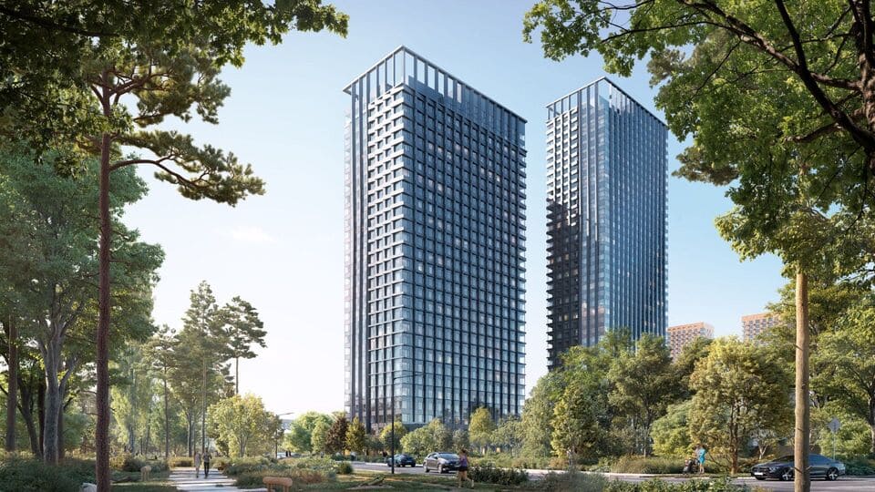 Первая очередь — 30-этажная башня на 330 квартир с отделкой White Box. Проект развивается в несколько очередей со сроками ввода до I квартала 2027 года.